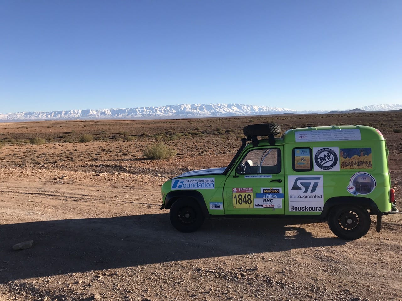 David Voge and Jean-Jacques Fagot were the two scholars representing ST during the 2018 4L Trophy. David is finishing a Master’s Degree in Digital Communication and is doing an internship in the Marketing Communication Department of our Microcontroller Division (MCD). Jean-Jacques is a third-year doctoral student, working on a thesis on Emerging Memory Technologies in collaboration with our Technology Research and Development Department in Rousset, France. Both collected school supplies from the local municipality and local grade school in Rousset, but their biggest challenge was getting the funds in time to enter the competition. They organized fund-raising events, got some support from local organizations and generous donors, but they still needed to cover most of their registration costs, and they only had six months to do it. That’s when they turned to ST.
