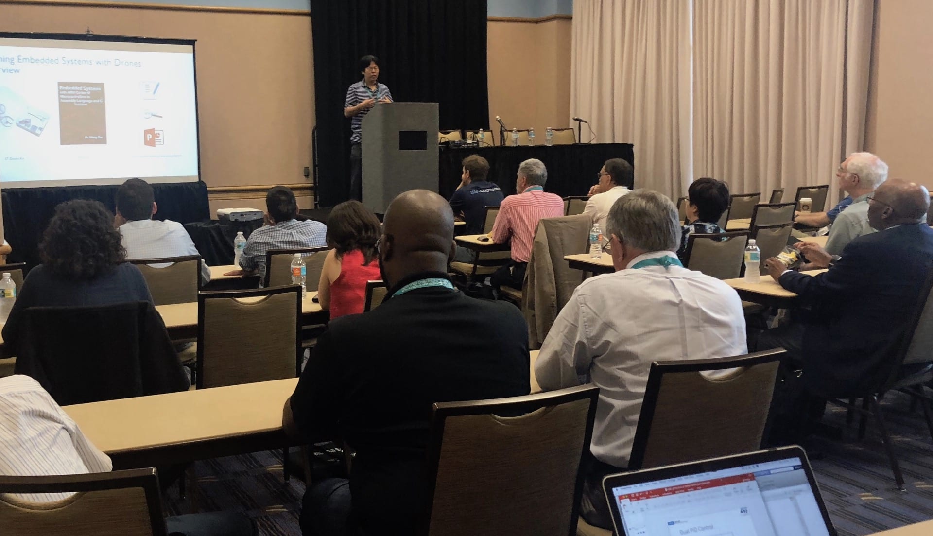 After an eye-opening first day full of beastly robots, pendulums, and conversations about the future of engineering education, Professor Zhu and Professor Kaiser were the highlights of our second and third days at the ASEE conference with their presentations on their new curricula. Professor Zhu opened the festivities to introduce a groundbreaking course that teaches embedded systems with our STEVAL-DRONE01 drone kit, our first ready-to-use aircraft embarking the STEVAL-FCU001V1 flight controller. Professor Kaiser then took over to talk about a transformative hands-on approach to motor control education during day two, while tackling the extension of the SensorTile curriculum to cover machine learning applications on the last day of the event.