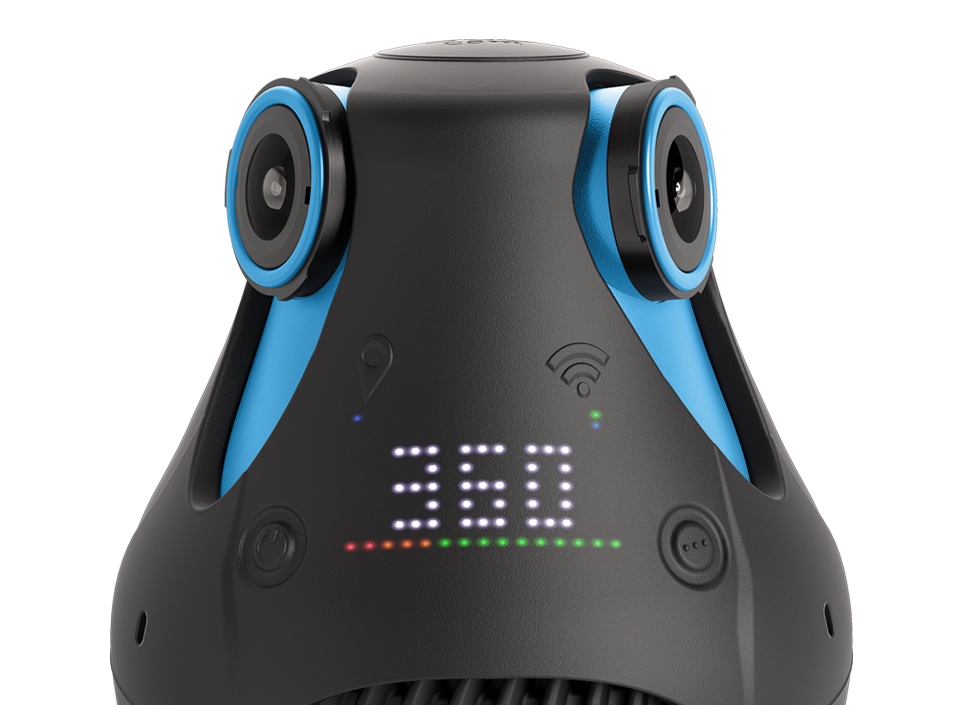 One of the 360cam’s most obvious features is the three 8-megapixel image sensors (1.4 µm pixel) that surround the device. Using an 185º Fisheye optic, they capture three wide-angle images that the system seamlessly processes in real-time to offer a combined 360º x 300º Field of View.