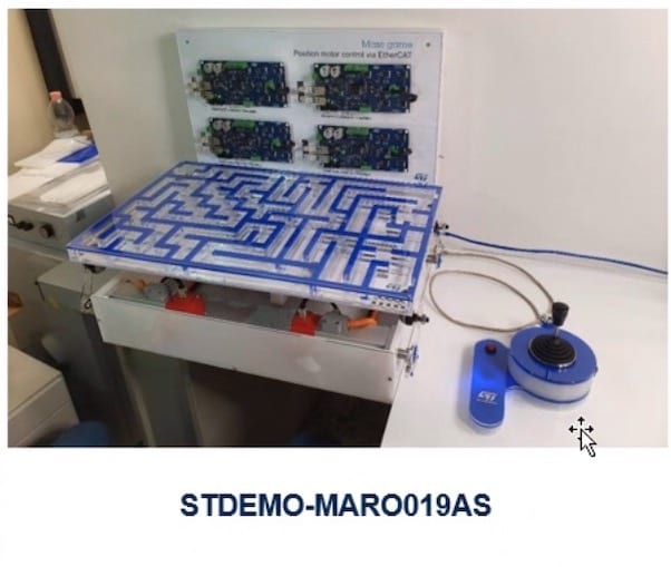 ST teams will also demonstrate how engineers can obtain greater accuracy with a real-life interactive maze. A labyrinth will sit on a reasonably large tabletop (60 cm x 35 cm 47 cm or 24 in x 14 in x 19 in), and our engineers will then place a motor at each corner to tilt the surface. Users will have the opportunity to control the motors, move the table, and guide a ball through the maze. Each of the four motors is controlled by a PCB that includes an STDRIVE601 gate driver, an STH270N8F7 power MOSFET, and an STM32F767ZI microcontroller, thus showcasing a complete design with a relatively low bill of material. The commercial version of that board, which we will call STEVAL-ETH001V1, will have an STDRIVE101 instead of the STDRIVE601.