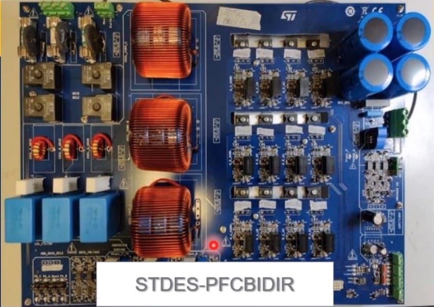 One way to solve this dilemma is with the STDES-PFCBIDIR, a three-phase bidirectional converter for electric vehicles. Thanks to its SCTW35N65G2V Silicon Carbide MOSFET, it enables the creation of significantly more efficient converters. The device is also present on the STDES-VINNARECT board, which was the subject of a recent webinar. Thanks to its wide bandgap, the SiC MOSFET has a higher switching frequency that vastly increases efficiency in high voltage applications. As a result, engineers can develop smaller chargers while offering more power. The STDES-PFCBIDIR also uses an STM32G474 because, among other things, its high-resolution timer means engineers can more easily drive SiC MOSFETs and use smaller passive components, thus lowering the bill of materials.