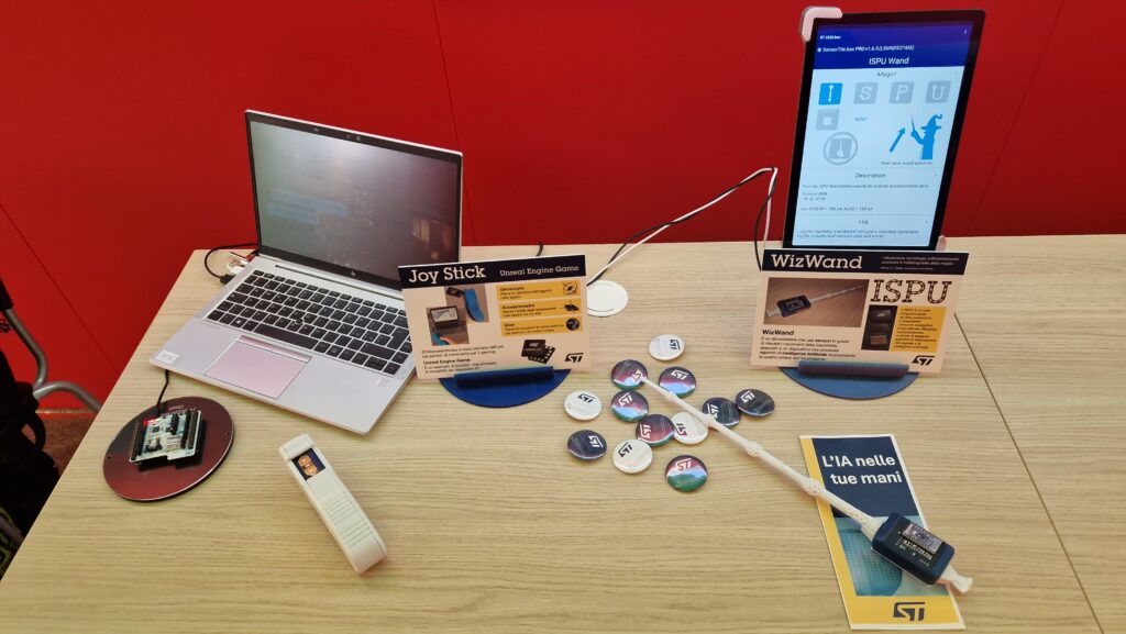 La bacchetta esposta allo stand di ST sembrerebbe magica, ma non lo è: la demo funziona grazie alla Integrated Signal Processing Unit (ISPU), un core programmabile a basso consumo e alte prestazioni integrato direttamente all’interno di un sensore MEMS. Nello specifico, il kit della bacchetta è composto dal sensore LSM6DSO16IS, montato sulla scheda SensorTile.box PRO tramite l’adattatore DIL24 STEVAL-MKI229A.