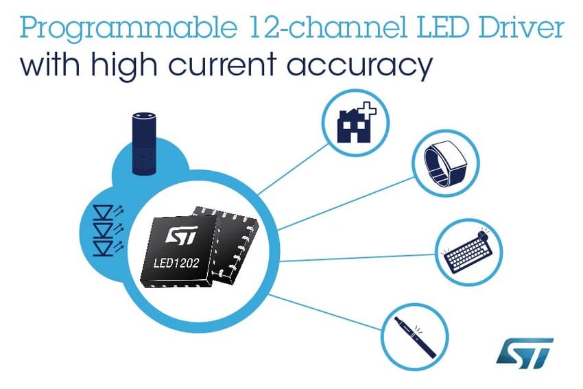 The LED1202 is our first 12-channel LED driver with eight programmable patterns capable of automatic sequencing, while its 8-bit analog and 12-bit digital dimming control enable precise lighting effects. Thanks to its ability to feed 20 mA of current to each channel, the LED1202 can power four RGB lights or 12 white ones. Moreover, its small WLCSP20 package (1.71 mm x 2.16 mm x 0.5 mm) will make it easier to implement it in tight designs where space is a major constraint, while its QFN 3×3 housing will help with heat dissipation in PCBs that enjoy larger areas.