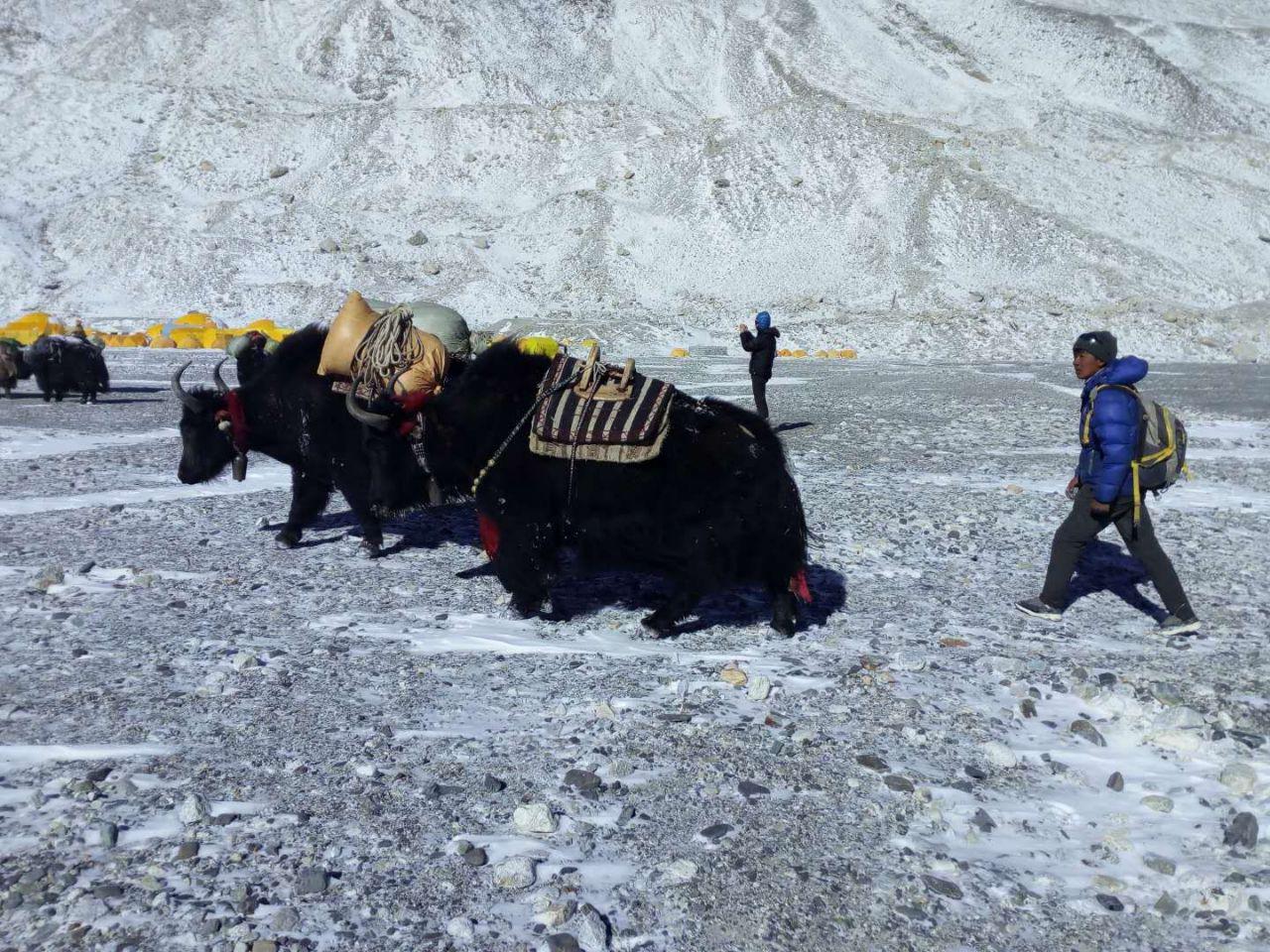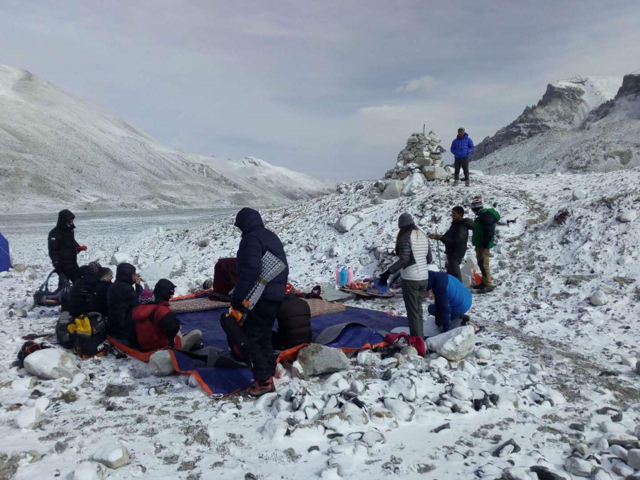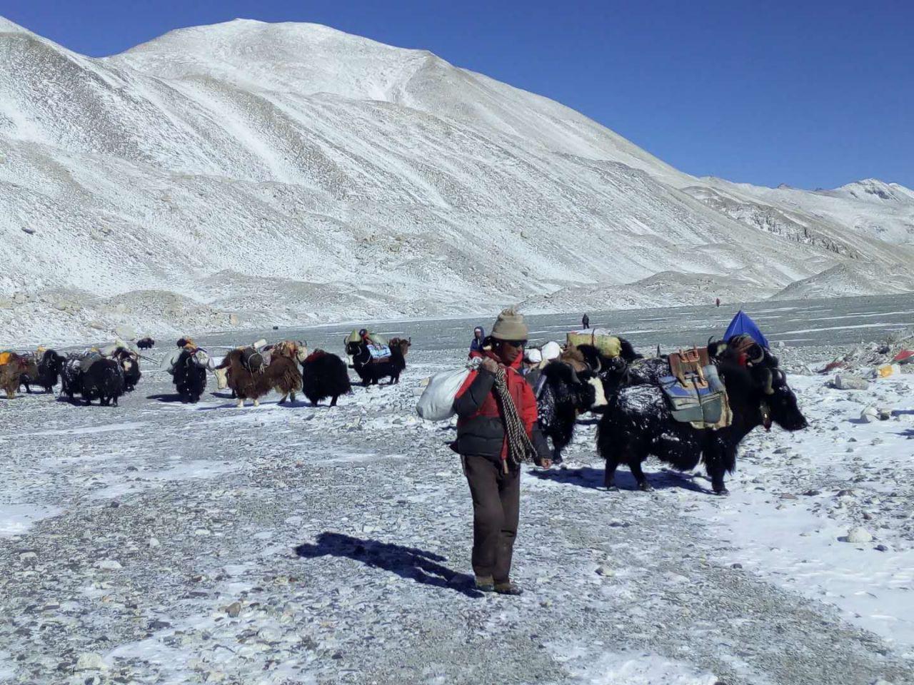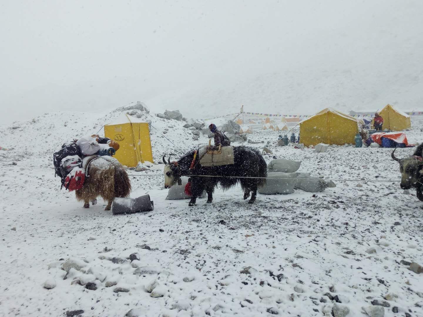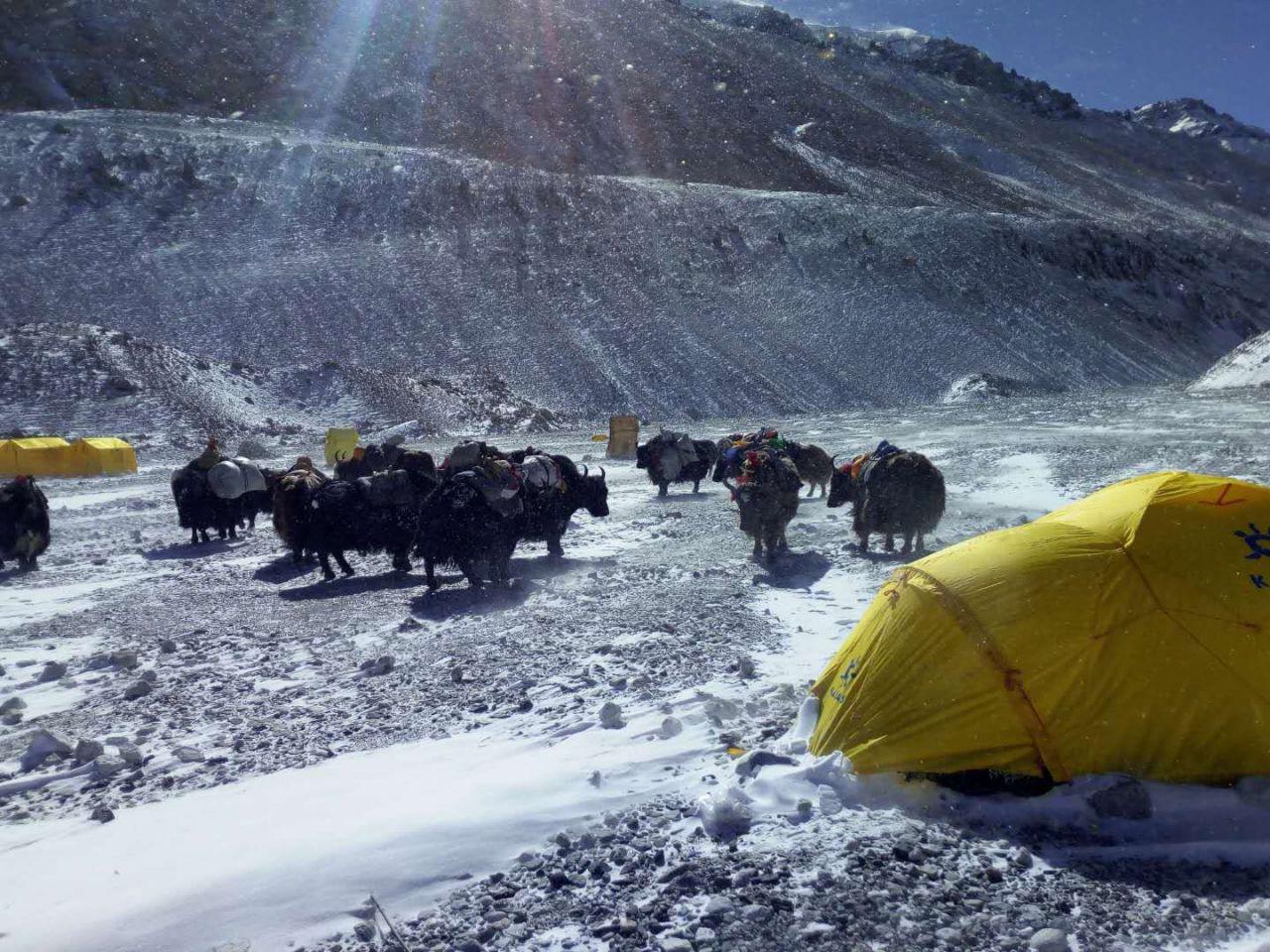 Luca Colli suffered his first major setback, but in the face of life-threatening circumstances, he realized that there was only one solution: stop the trek to Advanced Base Camp and return to Base Camp. During the ascension to 6,500 meters (21,325 feet) that he started on April 21, one of the sherpas displayed worrying signs that first led the team to believe he was suffering from cerebral edema. No matter who you are or how many times you’ve climbed Everest, the strain of such high altitudes on the human body remains intense. The group rapidly decided to turn back and use a yak to bring the man in distress to Base Camp, before his condition got any worse. To add insult to injury, once in Base Camp, a snowstorm hit our group of mountaineers.