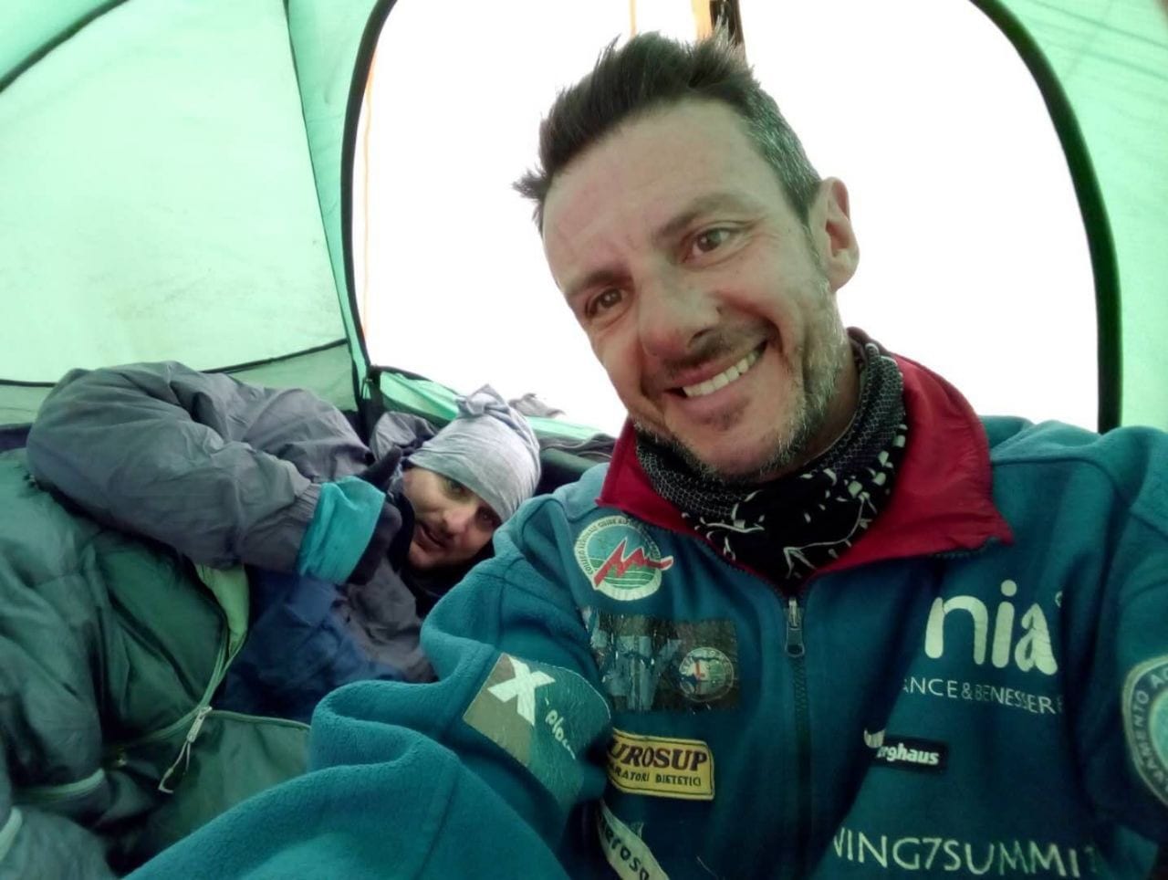 The following day, the sherpa got better and didn’t need further medical assistance. We still don’t know precisely what he was suffering from, but we are glad to report that he is a lot better now. This setback slowed down Luca’s acclimatization process because he will have less time to prepare in Advanced Base Camp. However, as he told us, there was really no question or regret. Everyone in the group realized that it was potentially a matter of life and death and they all decided to turn back at once instead of taking unnecessary risks. Luca tells us that he feels good and his morale remains strong. He also shared a picture of Morten, his Danish tent mate, and fellow climber.
