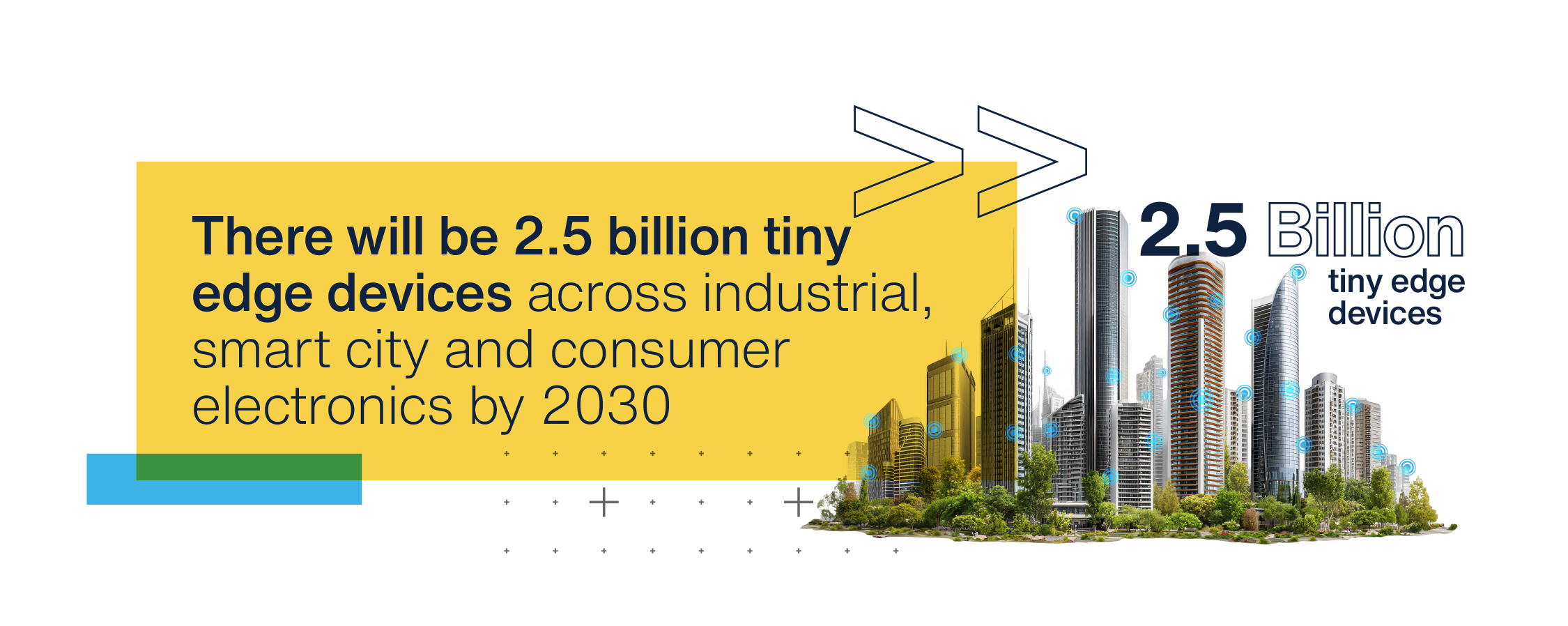 In the coming years tiny edge AI will become embedded in almost every type of system and device. Analyst firm ABI Research predicts that there will be 2.5bn tiny edge AI devices by 2030, across industrial, smart cities, and consumer electronics applications. The potential applications are endless, and we are already seeing increased R&D focused on the opportunity.