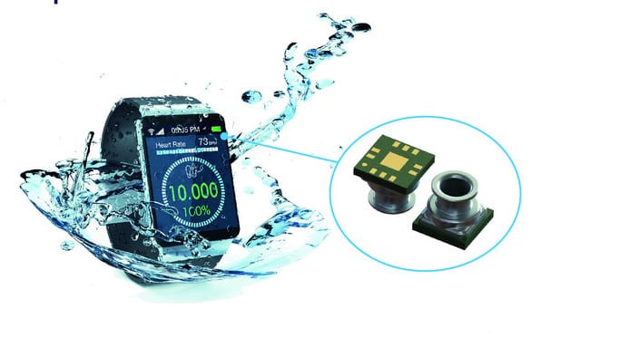 Until recently, the very structure of pressure sensors prevented them from running under water. These devices measure the atmospheric pressure to determine the user’s altitude and calculate whether that person is climbing up or down a flight of stairs for instance, which is essential in the case of an activity tracker. To be able to do so, the MEMS (Micro Electro Mechanical System) barometer uses a membrane, located inside the packaging, which bends upward and downward depending on the pressure changes. However, for such a system to be possible, there must be an air vent aperture that lets the air pass through. Indeed, an entirely sealed component wouldn’t be able to detect pressure changes accurately.