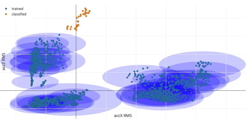 What we can do with machine learning is to find these boundaries and thresholds in a much more fine-grained matter. For example, in anomaly detection you can train a machine learning model (classical or neural network) that looks at all the data in your dataset, cluster these based on the output of a signal processing pipeline (still the same DSP instructions as you’d always), and then compare new data to the clusters. The supervised model learns all the potential variations in your data and creates thresholds that are much more precise and fine-grained than can be built by hand.