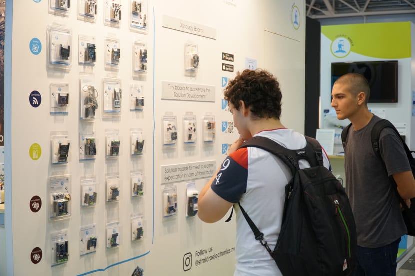 Inside the ST booth, there were also homemade demos. The most interesting and the ones that attract more audience at the event were the STM32MP1 and the STEVAL-DRONE01 (kit Drone), which features the high performance STEVAL-FCU001V1 flight controller unit, as well as the motors, propellers, plastic frame, and battery that will make a mini-drone. The flight controller unit runs the firmware (STSW-FCU001) to control the speed of each connected motor and to stabilize the drone. To achieve this, the STM32F4 microcontroller analyses data from the accelerometer and gyroscope sensors (LSM6DSL and iNEMO 6DoF) to provide highly accurate stability and control. The FCU board also includes a Bluetooth Low Energy SPBTLE-RF module, so users can turn their smartphone into a remote control. For those interested in building and flying their drone with ST’s first controller unit, we’ve created a community.