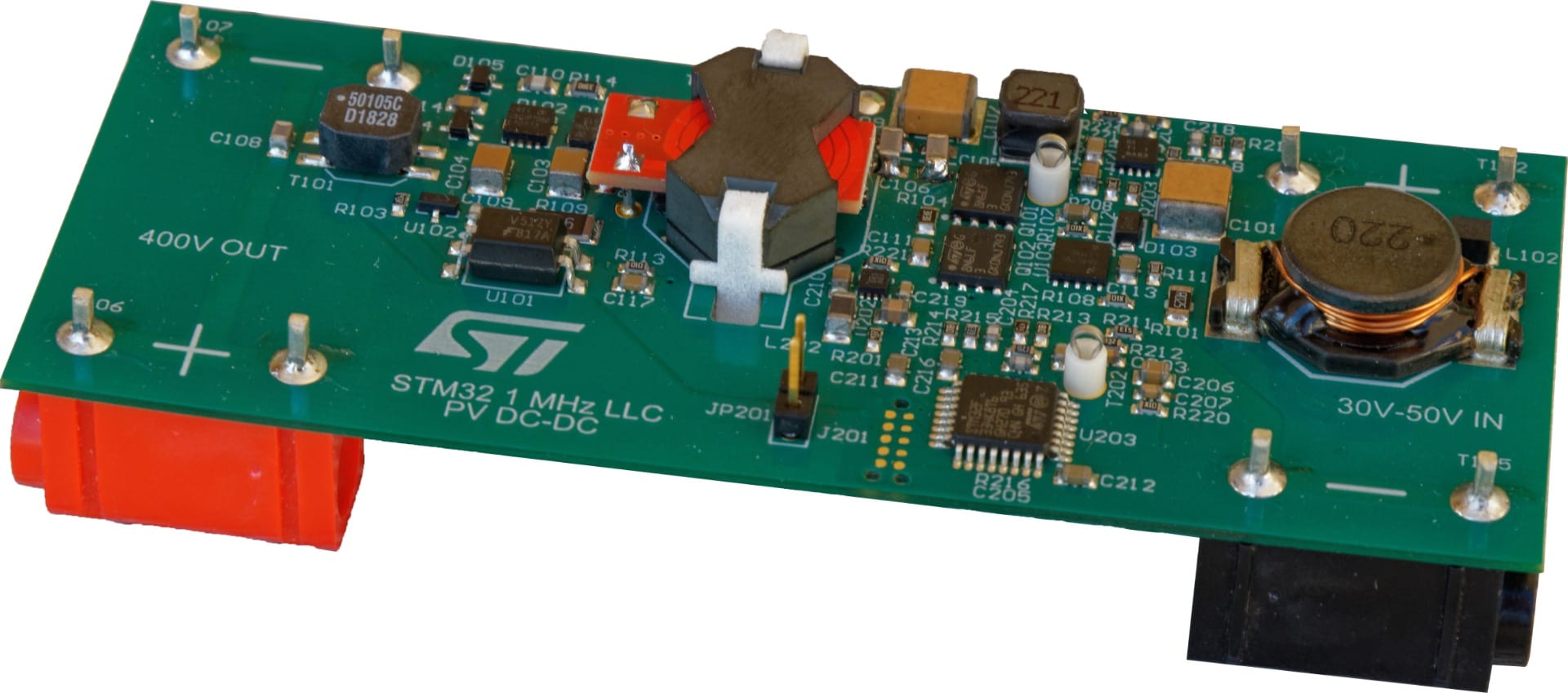 To help engineers design their digital MPPT solar converter, we published, on our Community platform, the design files (Altium), manufacturing files, and the software project to import into STM32CubeMX. They will go a long way to solve some of the most challenging aspects of this system and can serve as a great starting point or test platform to teams looking to develop their inverters. It also demonstrates how high-resolution timers ensure the use of smaller and more reliable components for a compact design and an efficiency above 90 % over a wide power range. The converter operates at 1 MHz and uses the HRTIM1 high-resolution timer of the STM32F334, but given the open source nature of the project, anyone can update it to use an STM32G474, for instance.