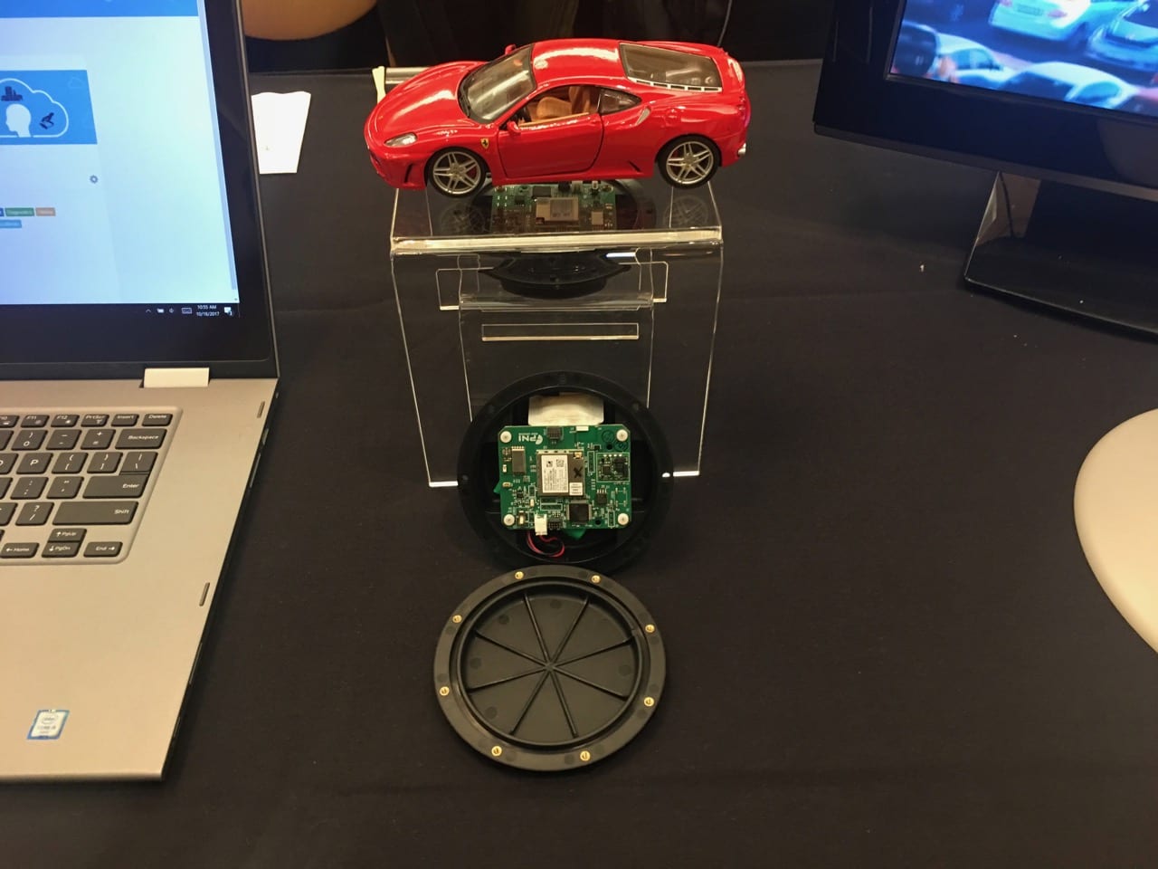 The PlacePod also uses other ST components, one of them being the SPBTLE-RF, a Bluetooth 4.1 module that integrates a BlueNRG-MS application processor and the necessary balun, filters, and antennas, to offer a working and certified solution right out of the box. As Joe gladly told us,