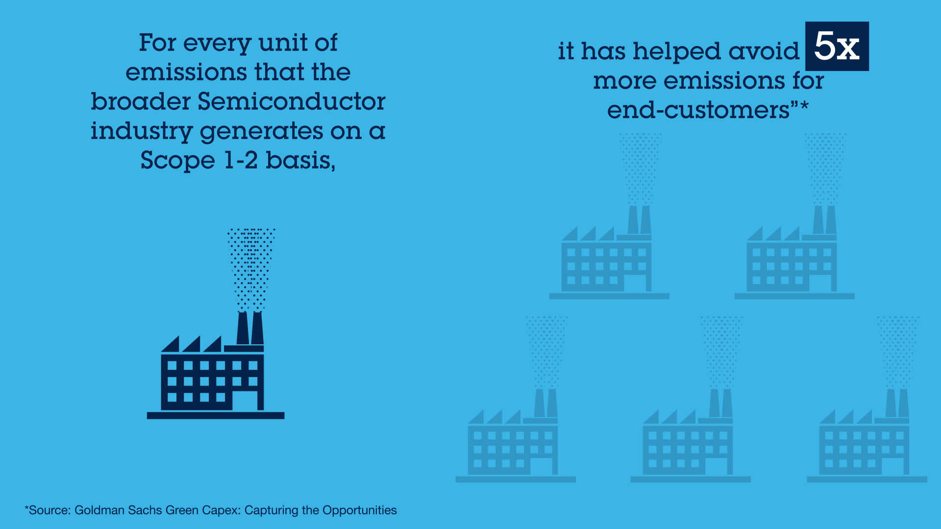 “for every unit of emissions that the broader semiconductor industry generates on a Scope 1-2 basis, it has helped avoid 5x more emissions for end-customers.”