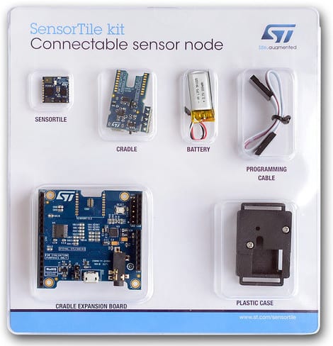 However, within the kit, SensorTile also comes packaged with a cradle board (STLCR01V1), a battery, a plastic case, and a cradle expansion board (STLCX01V1). These tools can power the small board so even startups or lone engineers can start developing solutions immediately. Hence, SensorTile becomes a great value proposition because it becomes possible to start a project with little initial investment.