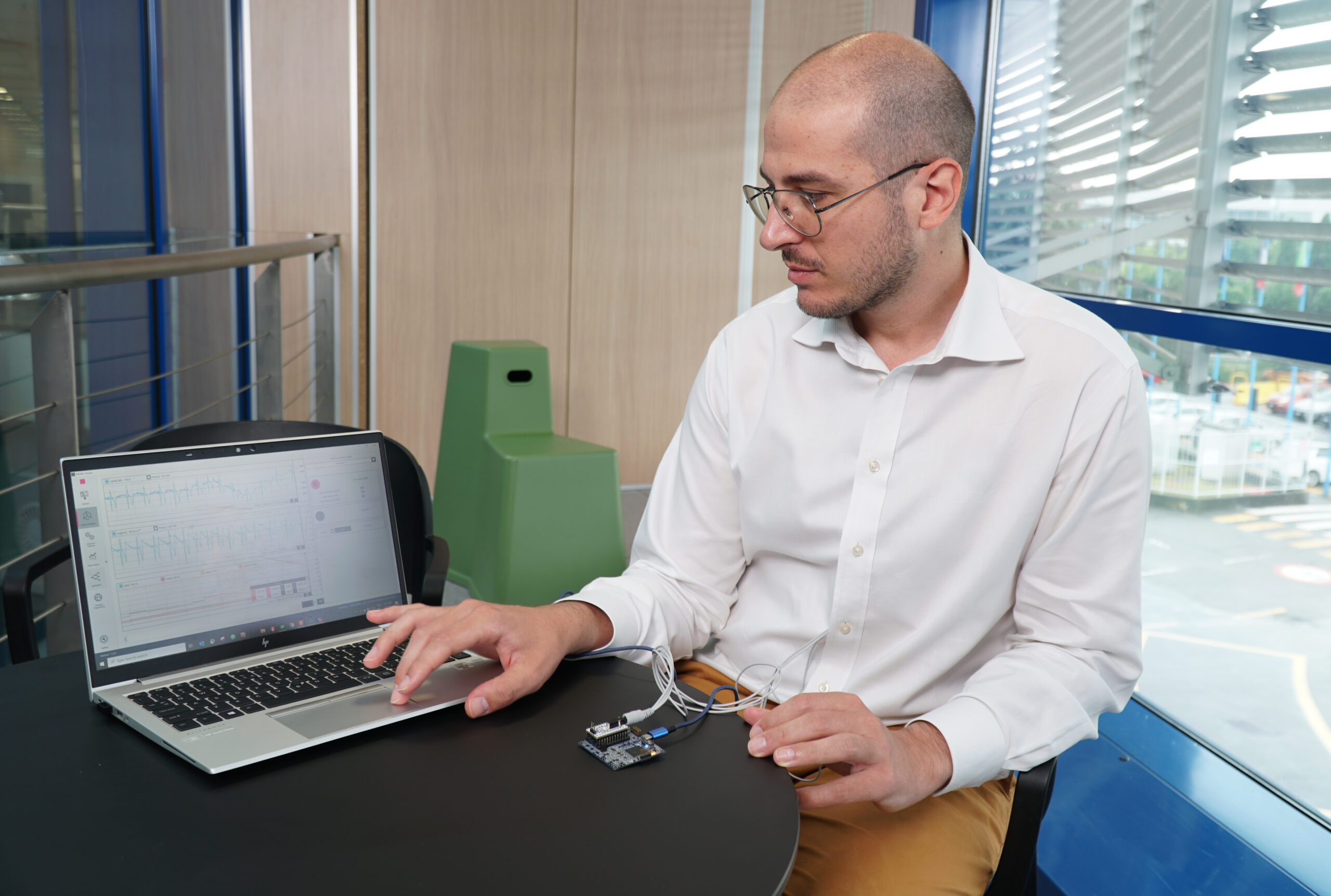 Besides announcing the arrival of the ST1VAFE3BX, we are also showcasing numerous demo applications. For instance, ST created a board with two electrodes and our newest device, all of which fit on top of a SensorTile.box PRO or the Professional MEMS Board STEVAL-MKI109V3. This is probably the simplest, fastest, and most cost-effective way to experiment with the ST1VAFE3BX. Users can immediately run an ECG application by placing two index fingers on the demo board. Hence, testing the capabilities of the new device against competing solutions is possible in a matter of minutes.