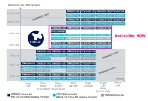 Additionally, this large selection of models within a package addresses a new trend called “customizable MCU.” Currently, wearables and mobile devices offer one microcontroller per product. However, manufacturers are looking into providing multiple versions of a product, each using a different MCU, to create a pricing structure that can catch more customers. Those looking for entry-level models will be glad to have a more cost-effective solution with less memory, while people willing to invest in more performance will also have the possibility to do so, and the manufacturer will end up appealing to a broader audience. Thanks to our new STM32G0 series, designers benefit from a wide range of configurations that all use an identical package, thus enabling them to keep the same PCB and code while offering various MCU options.