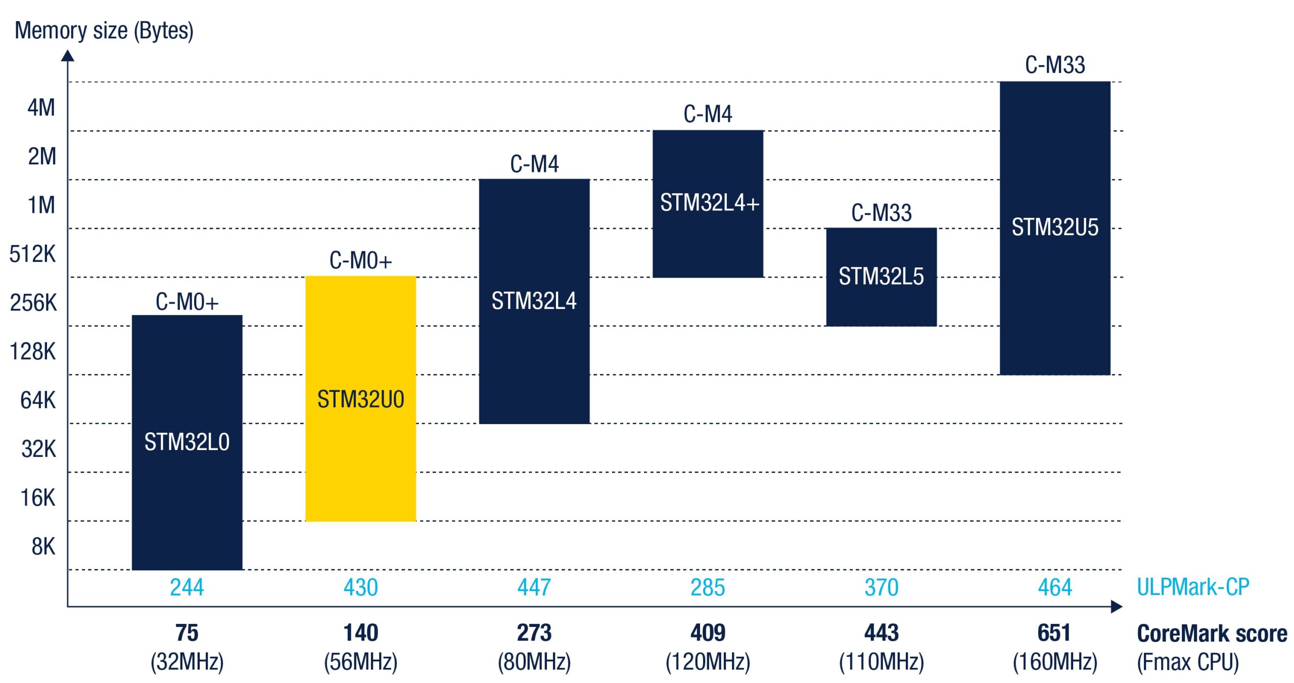 ST is launching the STM32U0, the first Cortex-M0+ with a static consumption of 160 nA in standby mode with RTC (Real-Time Clock) and 16 nA in shutdown. It also offers 140 points in CoreMark and SESIP level 3 capabilities, making it one of the most capable MCUs in the ultra-low power entry-level segment. This is possible because the STM32U0 adopts many features we’ve been implementing in other devices while reusing a 90-nm process node that offers exceptional yields. Consequently, the STM32U0 achieves one of the best static consumption at this price point, granting engineers more freedom to optimize their design for entry-level battery-powered applications in industrial, medical, smart metering, and consumer wellness markets.