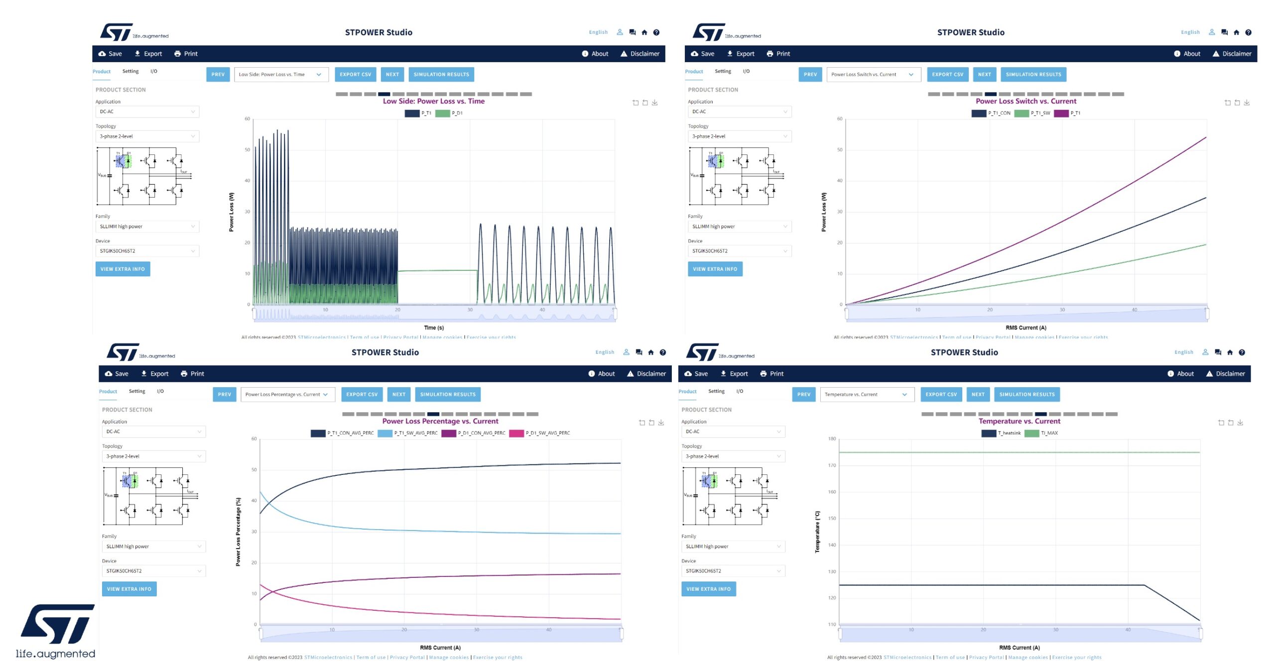The new version of STPOWER Studio features three new topologies. The 1-phase full bridge will fit single-phase photovoltaic converters or uninterruptible power supplies. As more residential homes and buildings increasingly rely on renewable energy, the ability to store solar energy in batteries is increasingly in demand. Hence, we wanted to ensure that engineers could more rapidly test their designs and reduce their time to market. Similarly, engineers working on an uninterruptible power supply can very quickly anticipate what their design will look like if they adopt an STPOWER device.