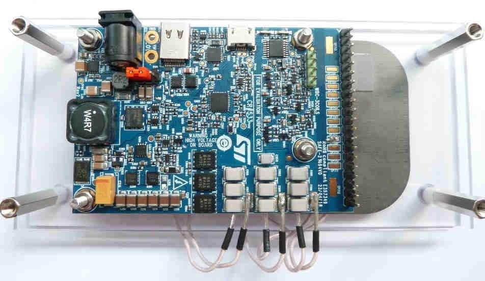 To help engineers take advantage of all these features, we offer the STEVAL-ISB047V1, an evaluation board integrating the STWBC-MC. It comes with a bill of materials and schematics so design teams can transpose our Qi transmitter onto their PCB faster. We can also announce that we already passed the preliminary Qi 1.2.4 tests and will obtain the certification for our new evaluation board by the end of the year. Since Qi is a system-wide standard, transposing our platform on a custom PCB dramatically facilitates the various approval and regulatory processes, thus reducing the time to market. The board even comes with a dongle that connects to a PC to offer a Graphical User Interface, the STSW-STWBCGUI, so developers can monitor power transfers, get error messages, and quickly configure the application.