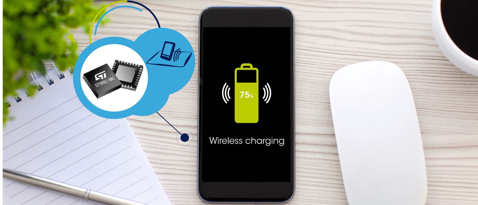 The STWBC-MC is our first Qi Extended Power Profile (i.e., EPP or 15 W) 1.2.4 wireless charging transmitter and our first device to manage up to three coils to offer a much larger charging surface. This new component is highly symbolic because it represents an important milestone in our wireless charging strategies over the years. Indeed, we started with the STWBC, which was our first Qi transmitter, and quickly followed with the STWBC-WA that brought wireless charging to wearables and other small devices thanks to a coil as small as one centimeter. The next step came last year when we introduced our first 15 W charging solution, the STWBC-EP, and we are now expanding on that technology by offering the ability to use more coils.