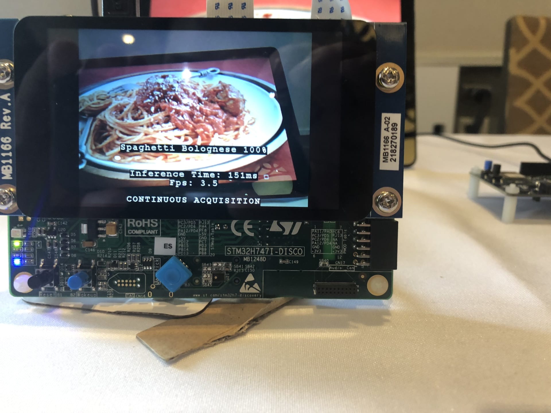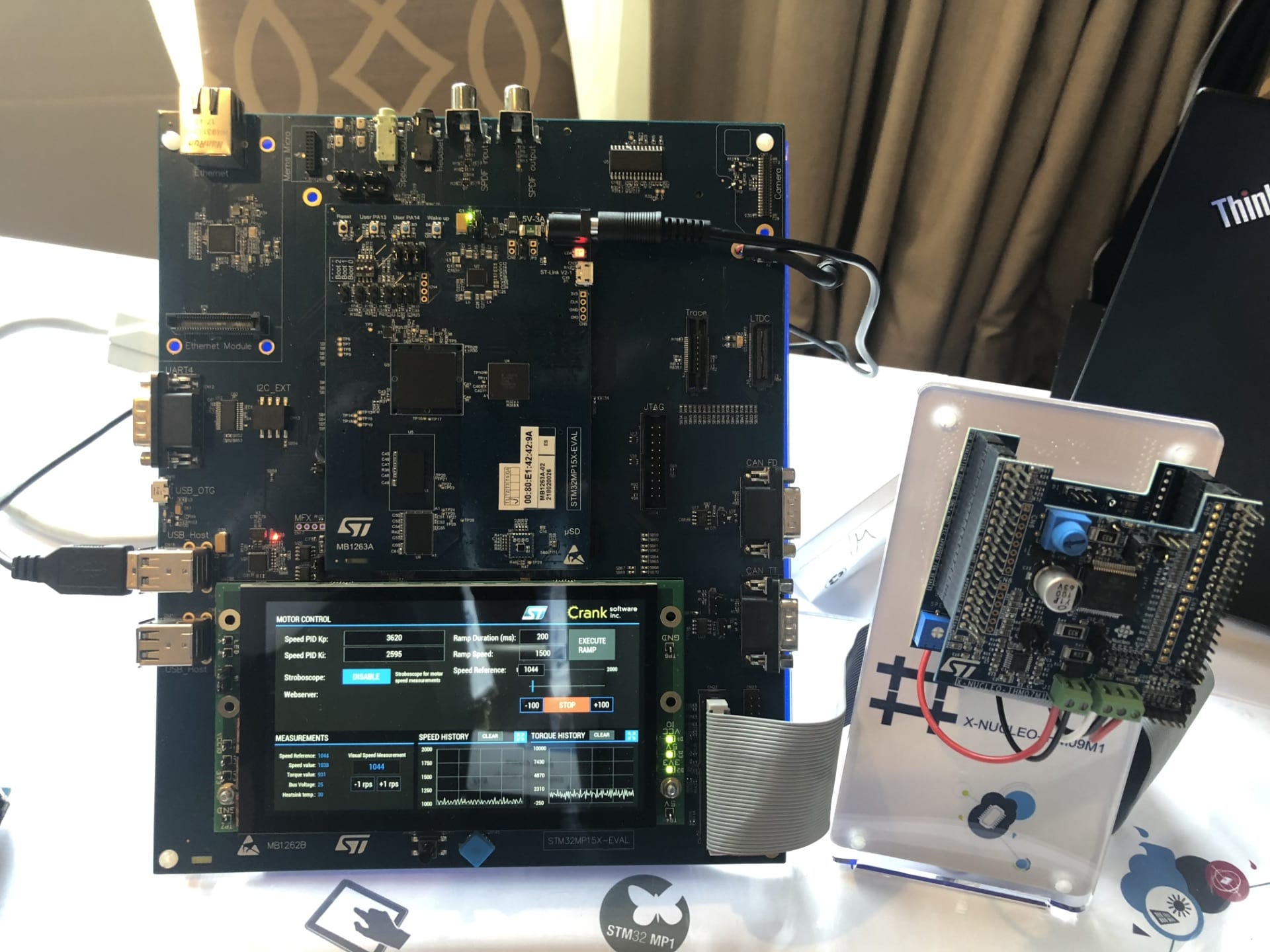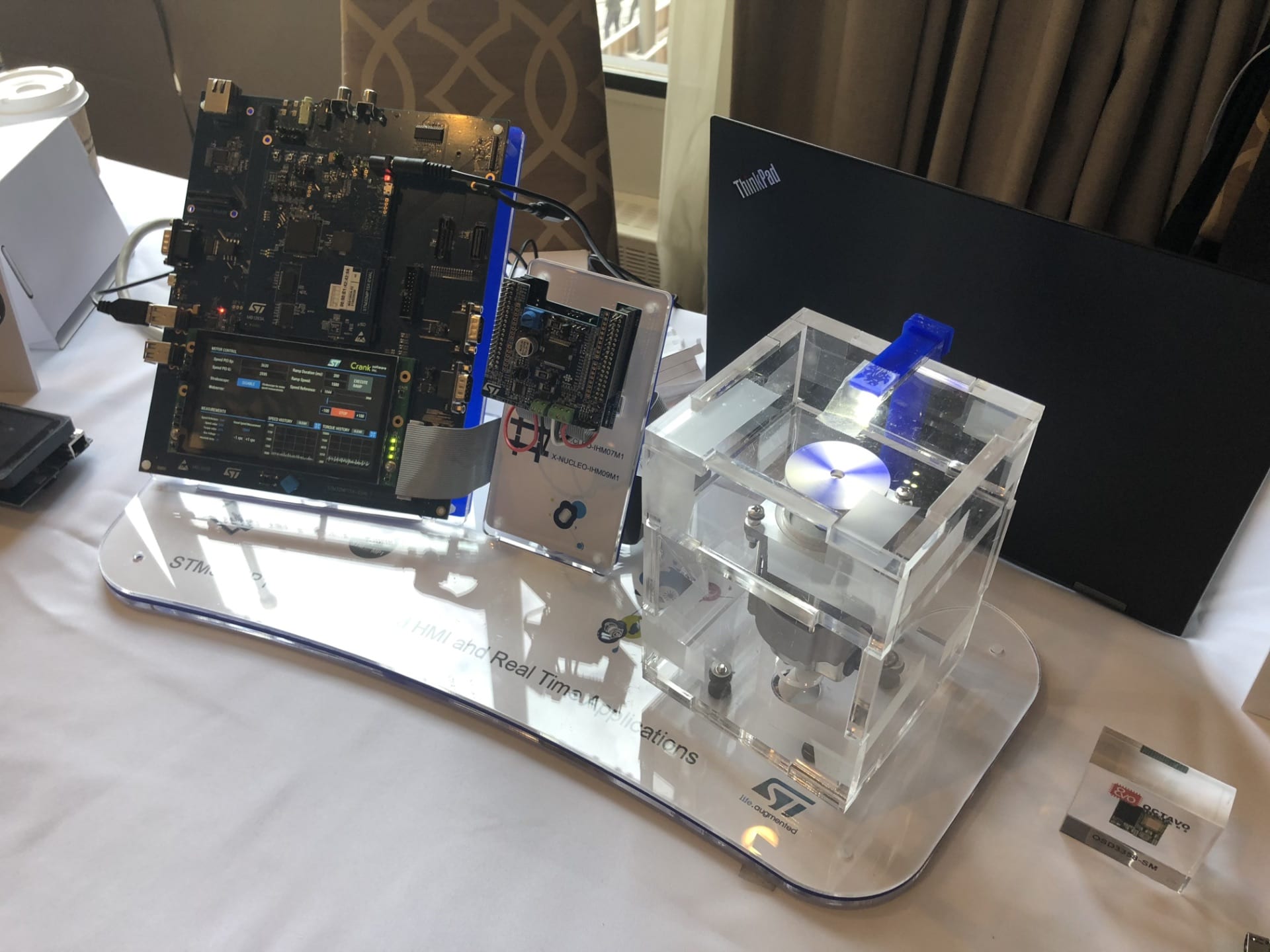 Following the keynote, attendees could attend talks on smart things, connectivity, or power and energy, with hands-on sessions on STM32CubeMX and the X-CUBE-MEMS1 Software Pack to help them take advantage of our sensors more rapidly. There was also a workshop on using Bluetooth 5 and the 802.15.4 standard with the STM32WB microcontroller that became available at the beginning of 2019. Furthermore, there were often demonstrations on the show floor to complement some of the presentations. For instance, after listening to an introduction on the STM32MP1, our first STM32 MPU, guests could check out the new microprocessor in action, running a motor control application and a graphical user interface from Crank. Similarly, after listening to our talk on STM32Cube.AI, attendees could see a machine learning demo running on our STM32H747I-DISCO board and capable of analyzing pictures to recognize dishes or drinks.