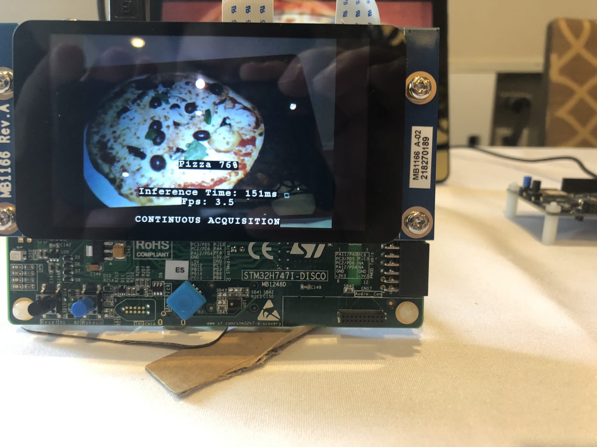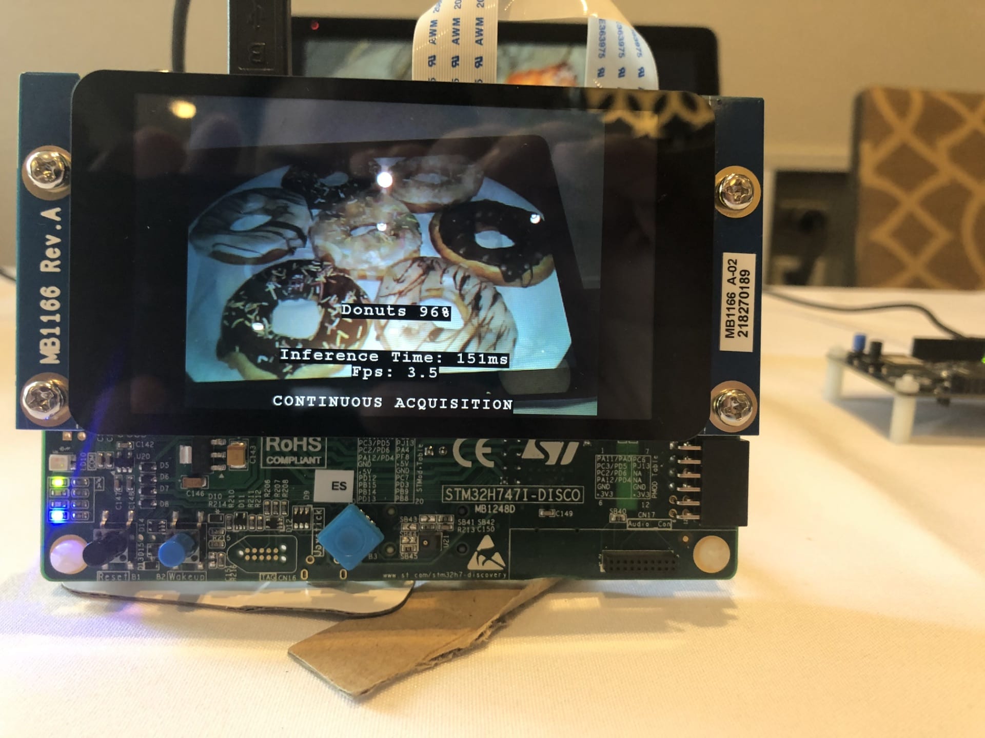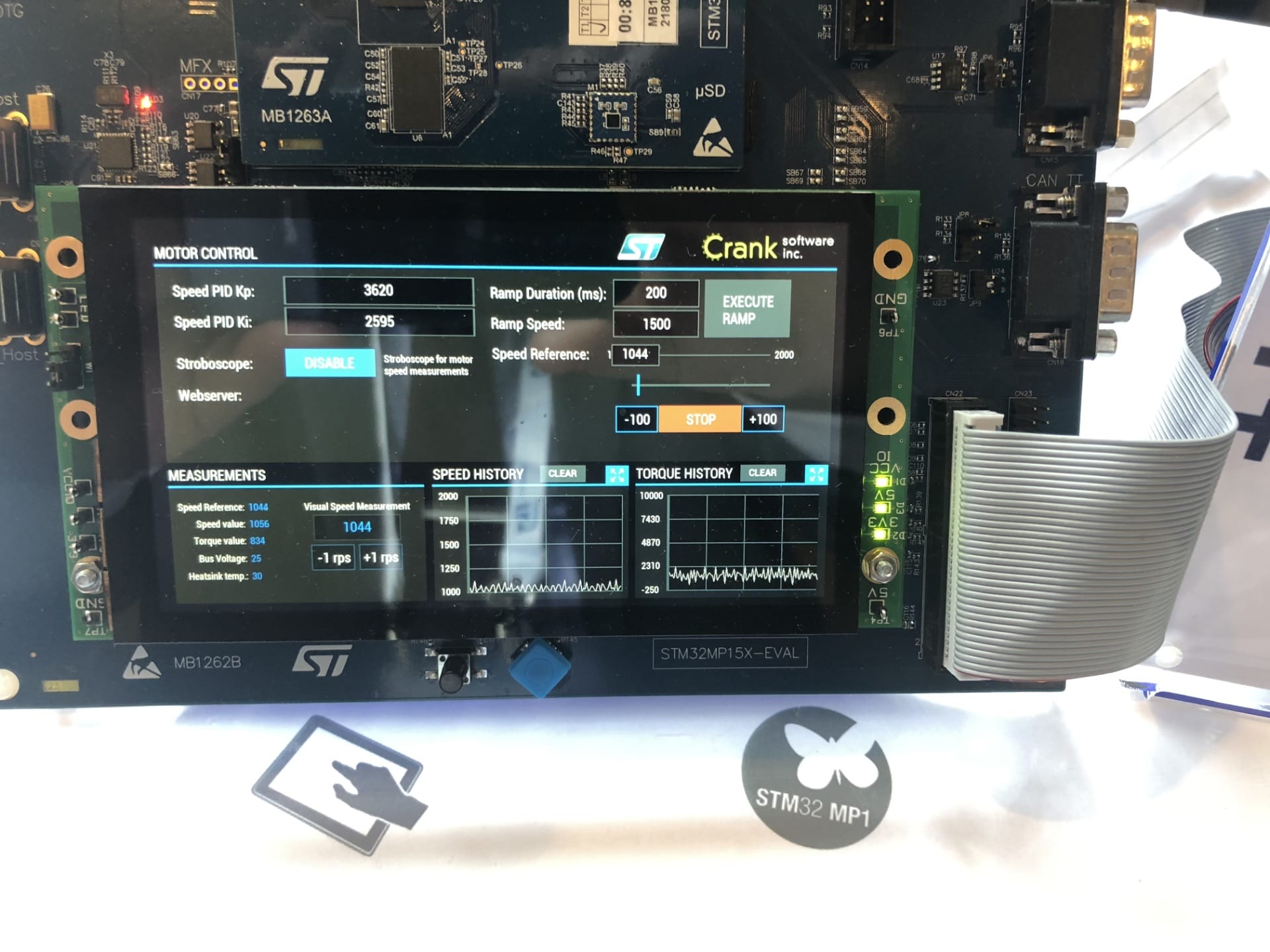 Following the keynote, attendees could attend talks on smart things, connectivity, or power and energy, with hands-on sessions on STM32CubeMX and the X-CUBE-MEMS1 Software Pack to help them take advantage of our sensors more rapidly. There was also a workshop on using Bluetooth 5 and the 802.15.4 standard with the STM32WB microcontroller that became available at the beginning of 2019. Furthermore, there were often demonstrations on the show floor to complement some of the presentations. For instance, after listening to an introduction on the STM32MP1, our first STM32 MPU, guests could check out the new microprocessor in action, running a motor control application and a graphical user interface from Crank. Similarly, after listening to our talk on STM32Cube.AI, attendees could see a machine learning demo running on our STM32H747I-DISCO board and capable of analyzing pictures to recognize dishes or drinks.
