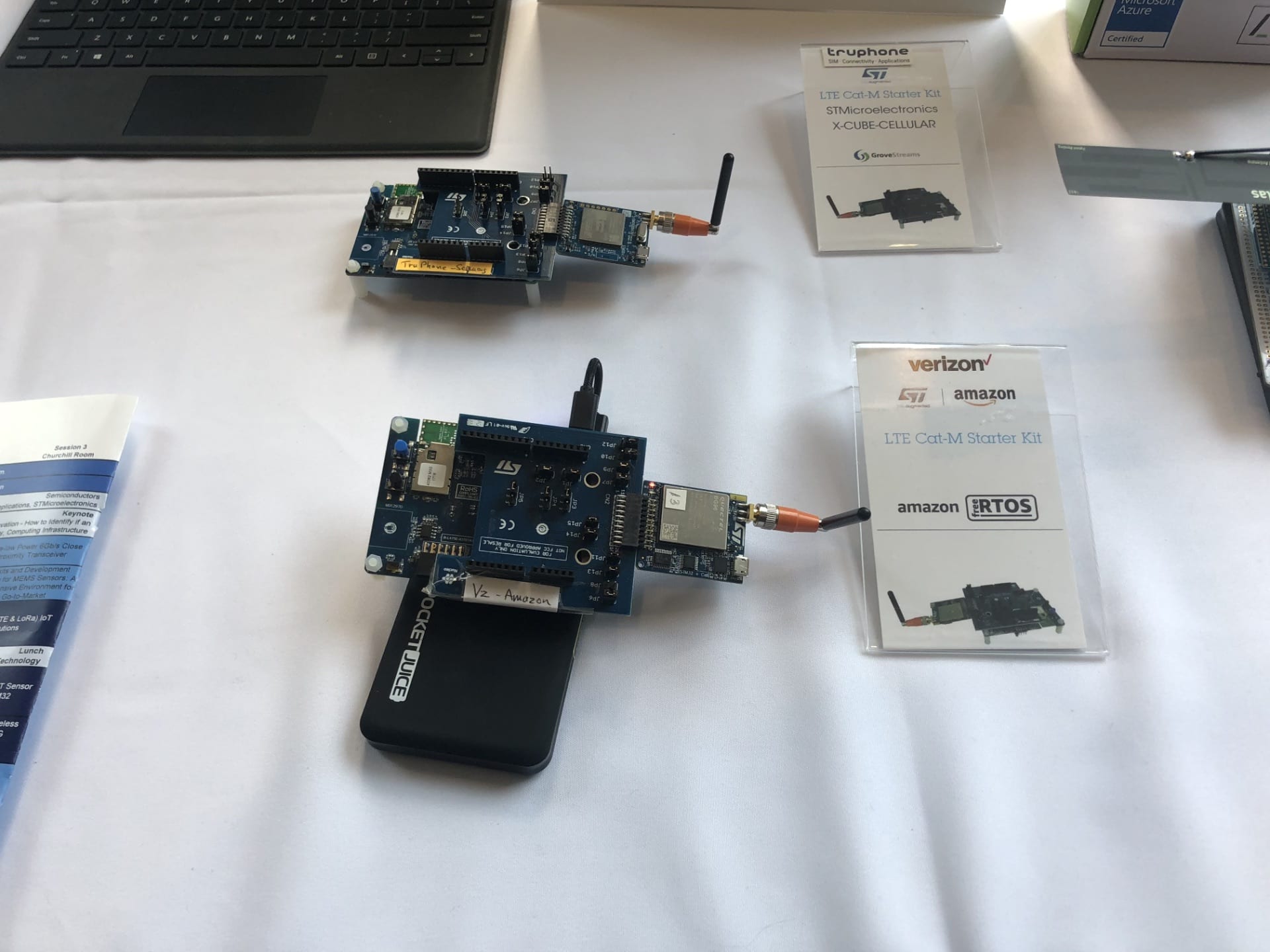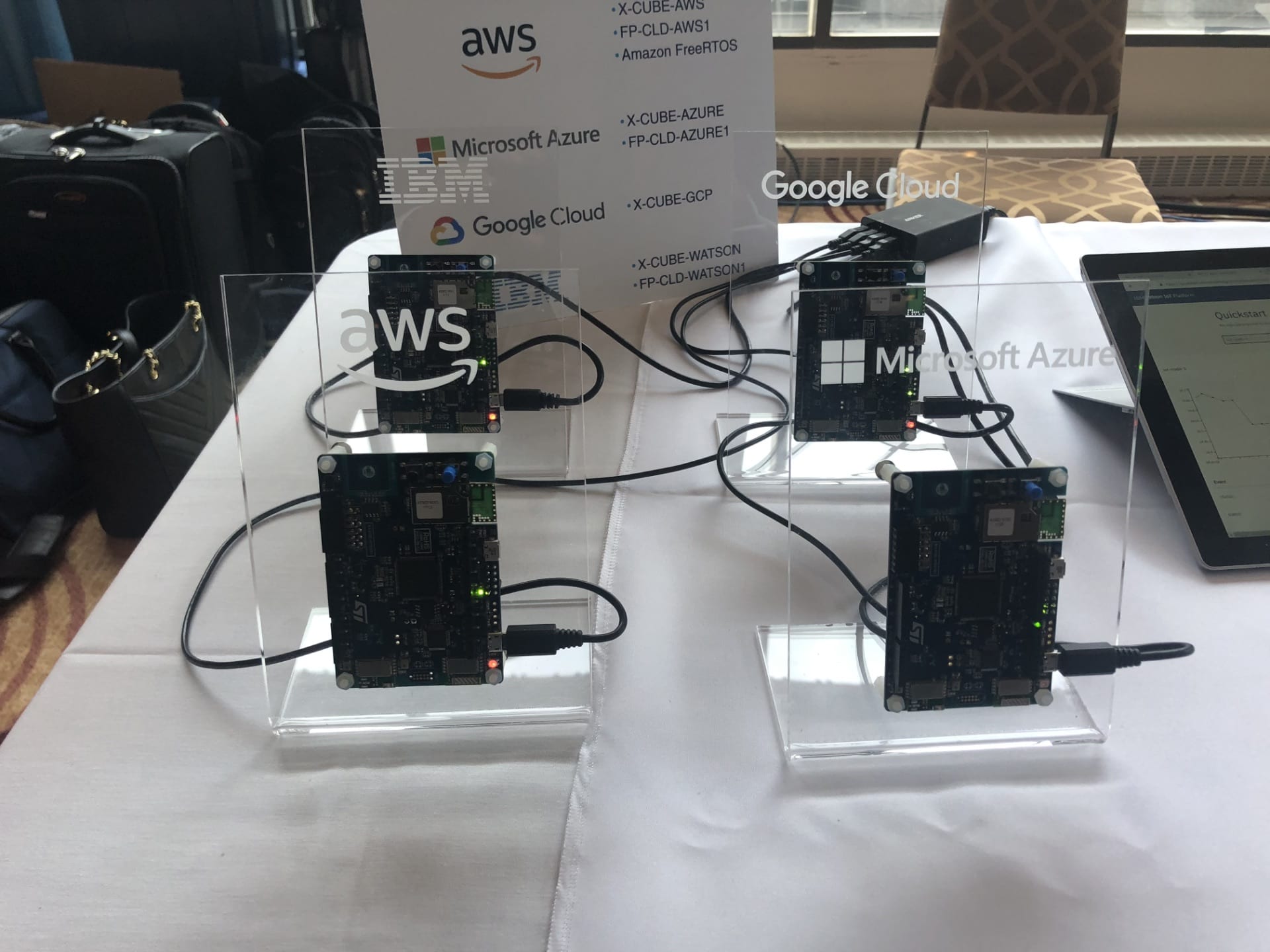 The Toronto Tech Tour had demos and talks relevant to Canadians. For instance, we noticed that LoRa and cellular connectivity are increasingly popular as more engineers look to leverage these networks for their IoT applications. We thus had technical sessions on LPWAN (LTE and LoRa), 5G, and Bluetooth mesh. We then showed an LTE Cat-M Stater Kit with a SIM card from Telus, a Canadian operator. It was also a great way to demystify LTE Cat-M and help them understand that it’s nothing like a smartphone plan, but an affordable and reasonable solution to connect a fleet of IoT devices. And for those who can’t use a cellular network or want something that consumes less power, we also showed our STEVAL-STRKT01 LoRa IoT Tracker and had a Bluetooth mesh demo showing how to provision and configure devices.