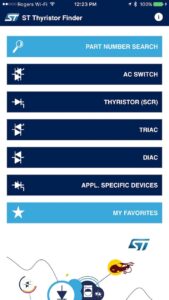 Thyristor Finder is the newest mobile application from ST. It makes finding the right thyristor for your design a breeze by simplifying the selection and integration of the right component, and it is currently available on iOS and Android. Crowdfunding offers fresh opportunities and exposure to small teams, allowing them to disrupt markets. However, it also means newcomers, who often have fewer resources or experience, must face design challenges that only big corporations had to deal with previously. One example is understanding the importance of thyristors or AC switches, and finding the right one in a sea of part numbers and specifications. This is the reason why ST isn’t simply manufacturing thyristors, but also sharing its knowledge and expertise through an unparalleled mobile app, support, and online community.