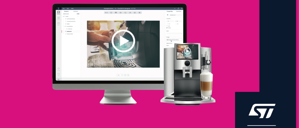 To rapidly test the new TouchGFX 4.18 video widget, download this MP4 file entitled Coffee-Demo.mp4. Its resolution of 320 x 240 will fill up the 2.2-inch displays of one of our expansion boards.