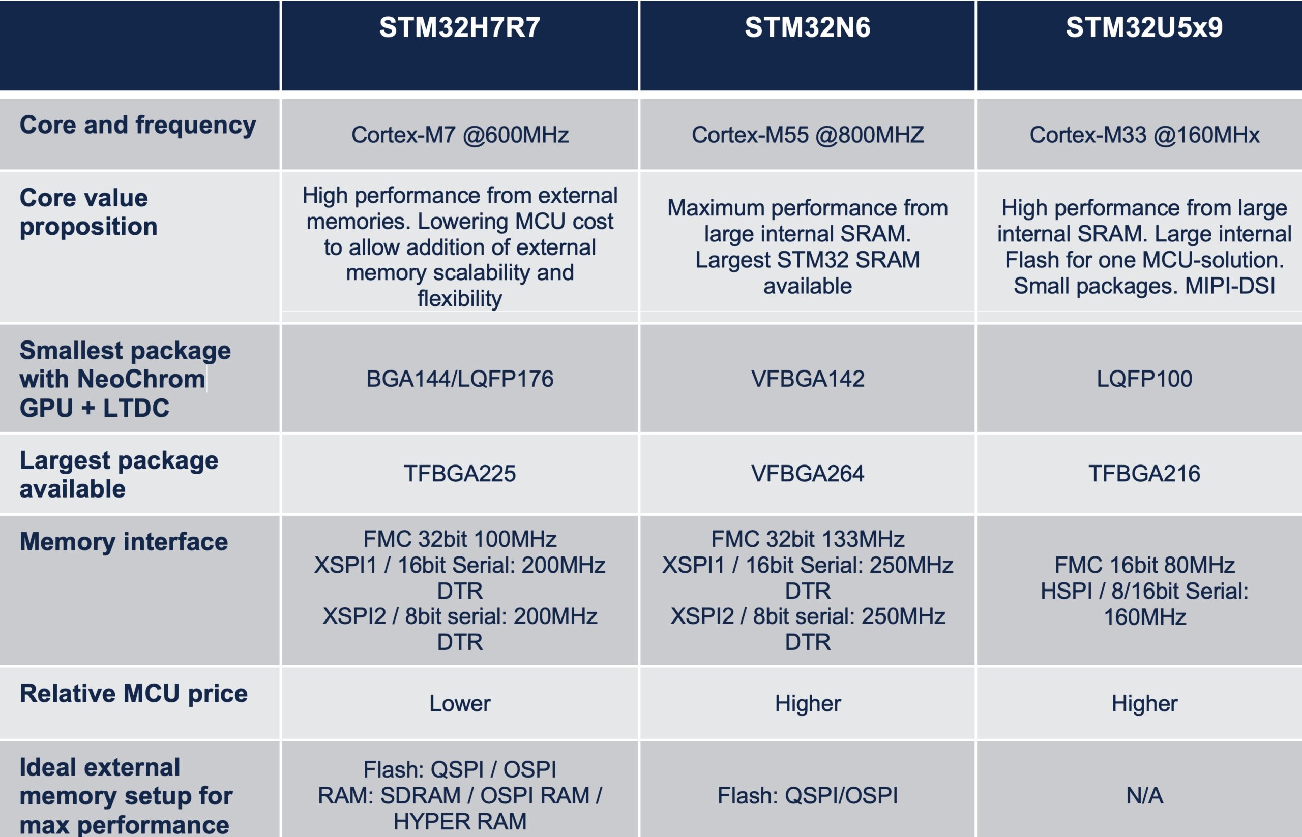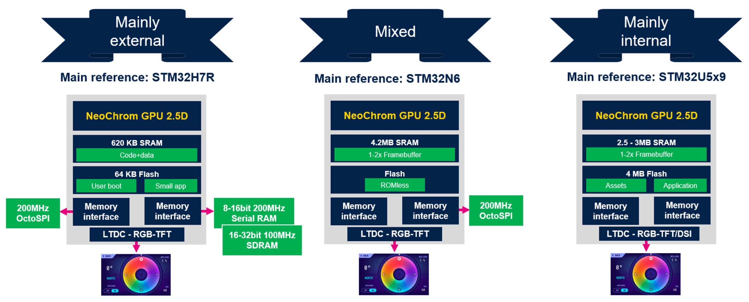 Let us explore what UIs would benefit from each of these three configurations and which STM32 device would work best.