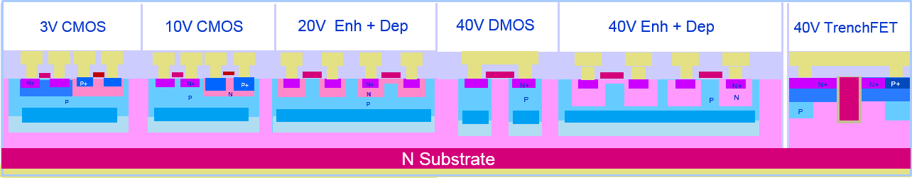 The idea may be simple but the implementation is tough. It requires mastering multiple technologies and combining them on one wafer. ST has more than 25 years experience since creating our VIPower technology and ST is now in its seventh generation. But hold on, we haven’t explained what the term VIPower means yet. VIPower stands for Vertical Intelligent Power and comes from being able to integrate Vertical Power Transistors on the same substrate as traditional logic and sensors, which add the Intelligence. In fact, as the diagram below shows, it’s pretty complex.