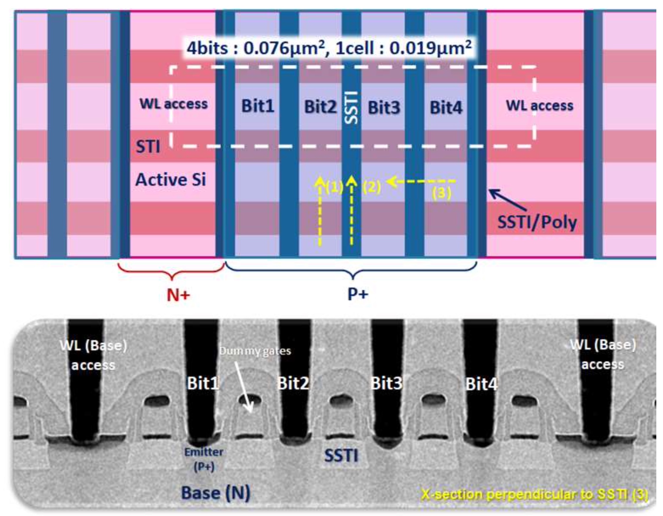 In discrete modules, manufacturers isolate the BJT thanks to a process called Super Shallow Trench Isolation (SSTI). Olivier’s paper is a breakthrough because it shows how ST, for the first time in the industry, applies this process to embedded PCM. To achieve this, we are using the buried oxide of the FD-SOI substrate to create an isolation wall between the bitlines, which prevents bitline-to-bitline leakage. Additionally, the ST paper shows that it is possible to use the same process to shrink the embedded cell to 0.015 µm2, from 0.019 µm2 today. The technology is thus highly scalable and should further help democratize phase-change memory modules.